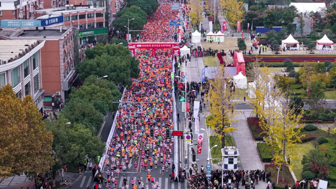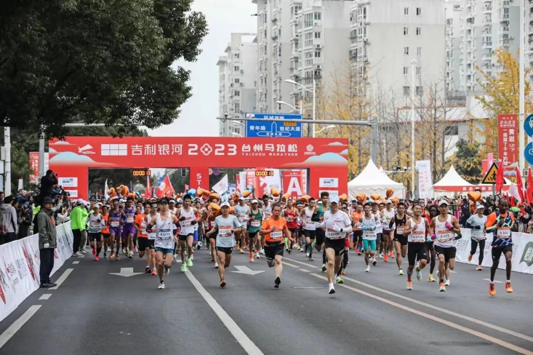 奏响体育盛事与城市发展的交响曲!12月3日上午8:00,吉利银河·2023台州马拉松鸣枪起跑,约15000名选手相约台州市黄岩区人民政府广场,踏上久违的马拉松赛道。赛事以“山海水城,和合圣地,制造之都”为主题,路线串联九峰山、委羽山、官河古道等城市特色风物,选手于移步换景间领略自然风光,感悟历史底蕴,品味城市魅力。