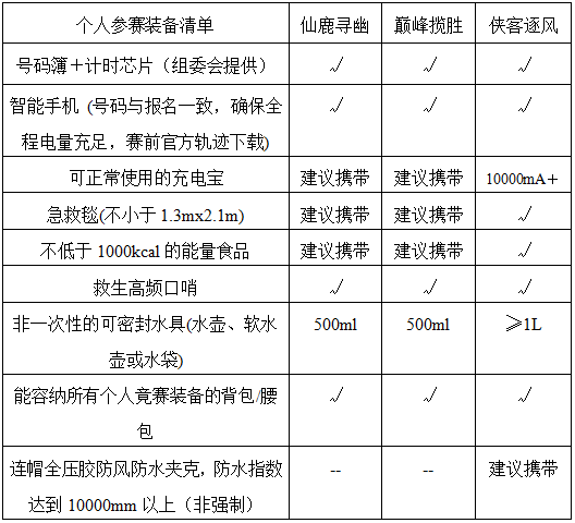 注:组委会有权在赛前根据天气情况,追加个人竞赛装备的种类和数量。